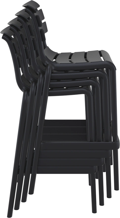 The modernly designed bar stool is appropriate for both inside and outside use. It's made of high quality polypropylene, and strengthened by glass fibers.
