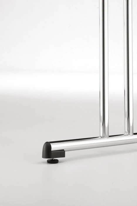 La base del tavolo e' di metallo cromato su cui e' fissato il piano tavolo.