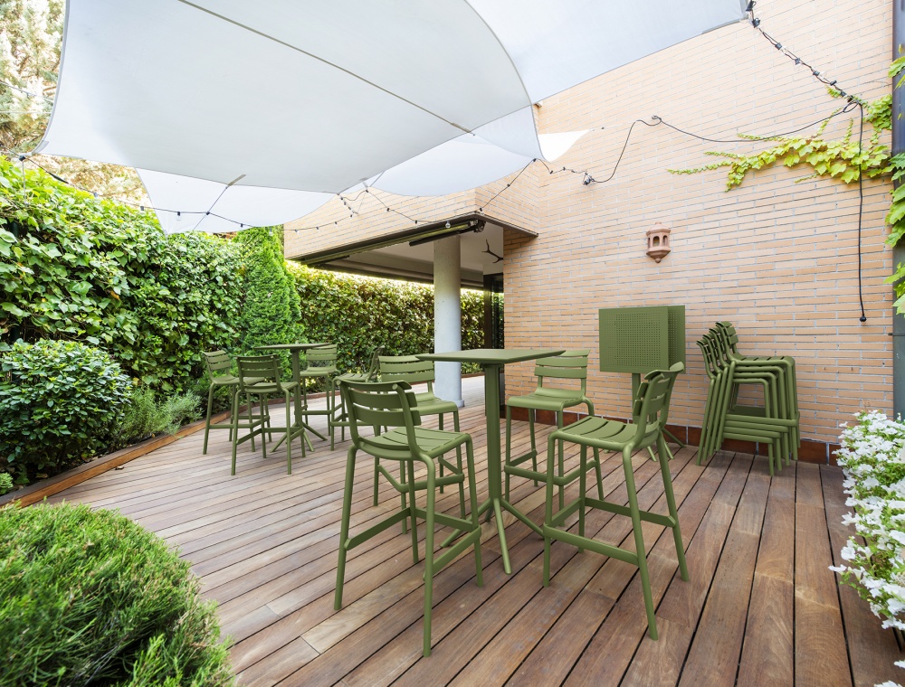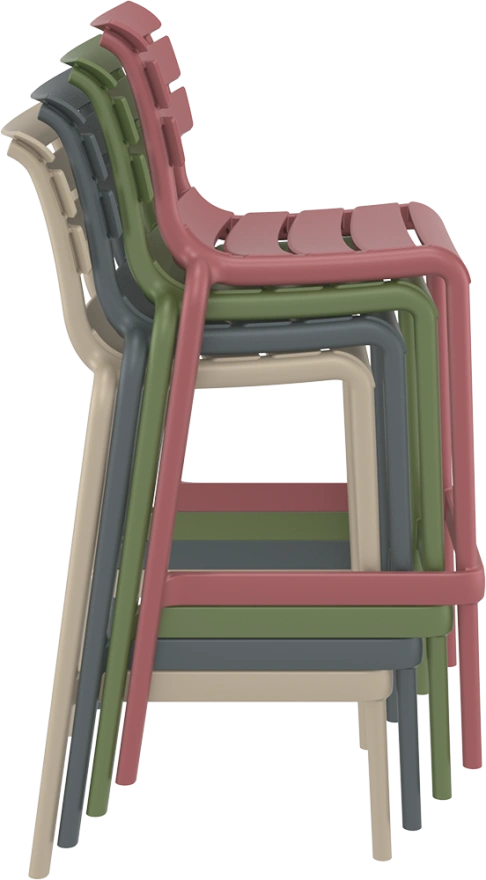TOM BAR 75H - sgabelli da bar dal design moderno, adatti per uso all'interno e all'esterno. Realizzati in polipropilene rinforzato con fibre di vetro.