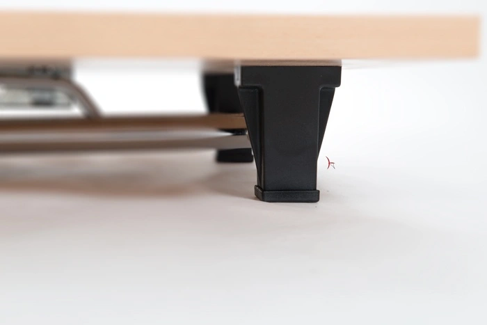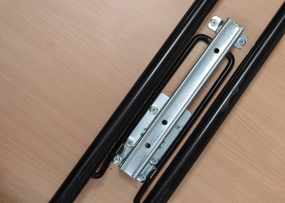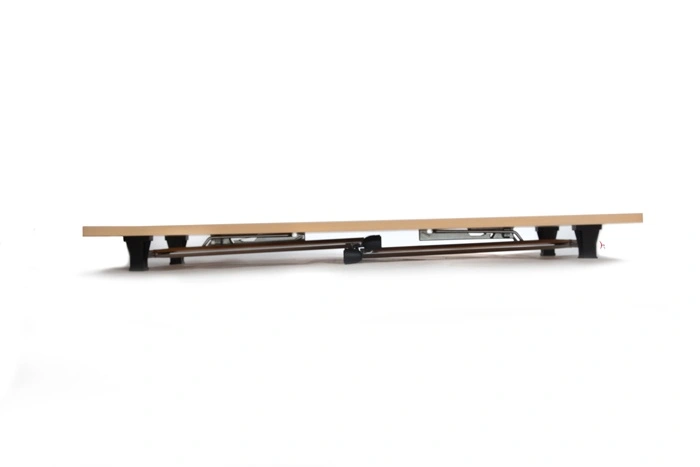 Spodnji del mize je iz kovinskega krom podnožja, na katerega je pritrjena mizna plošča.