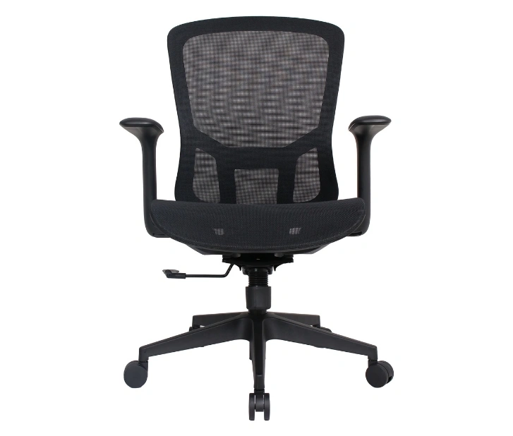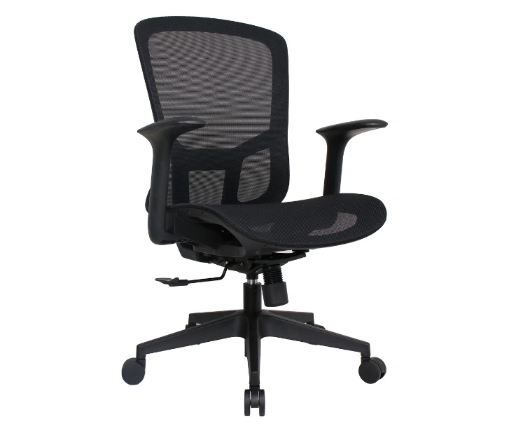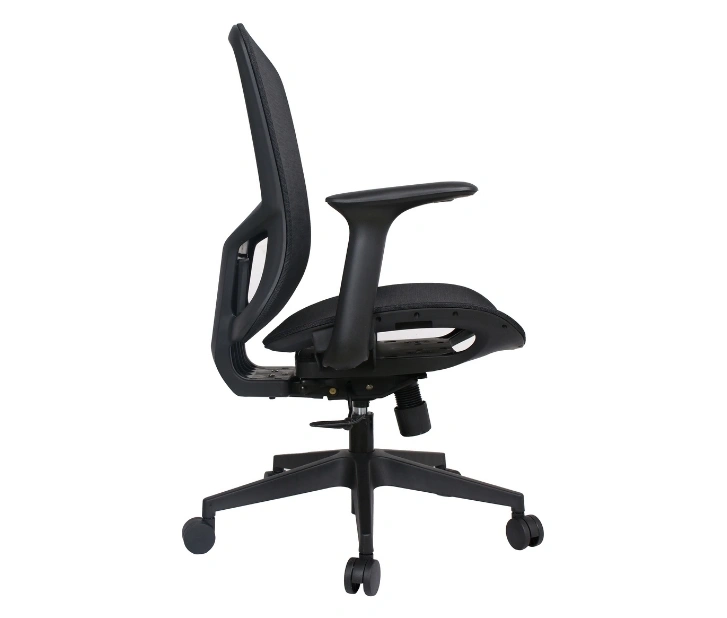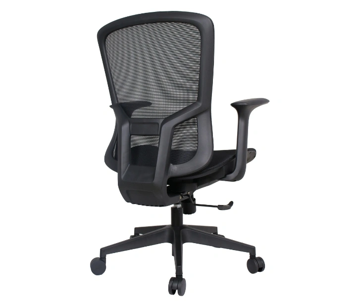 Pisarniški stol RESPI v črni izvedbi je praktična in cenovno dostopna izbira za pisarno ali domačo uporabo. Zračno mrežasto naslonjalo poskrbi za boljše kroženje zraka in udobje pri daljšem sedenju, ergonomska oblika pa nudi oporo hrbtu.